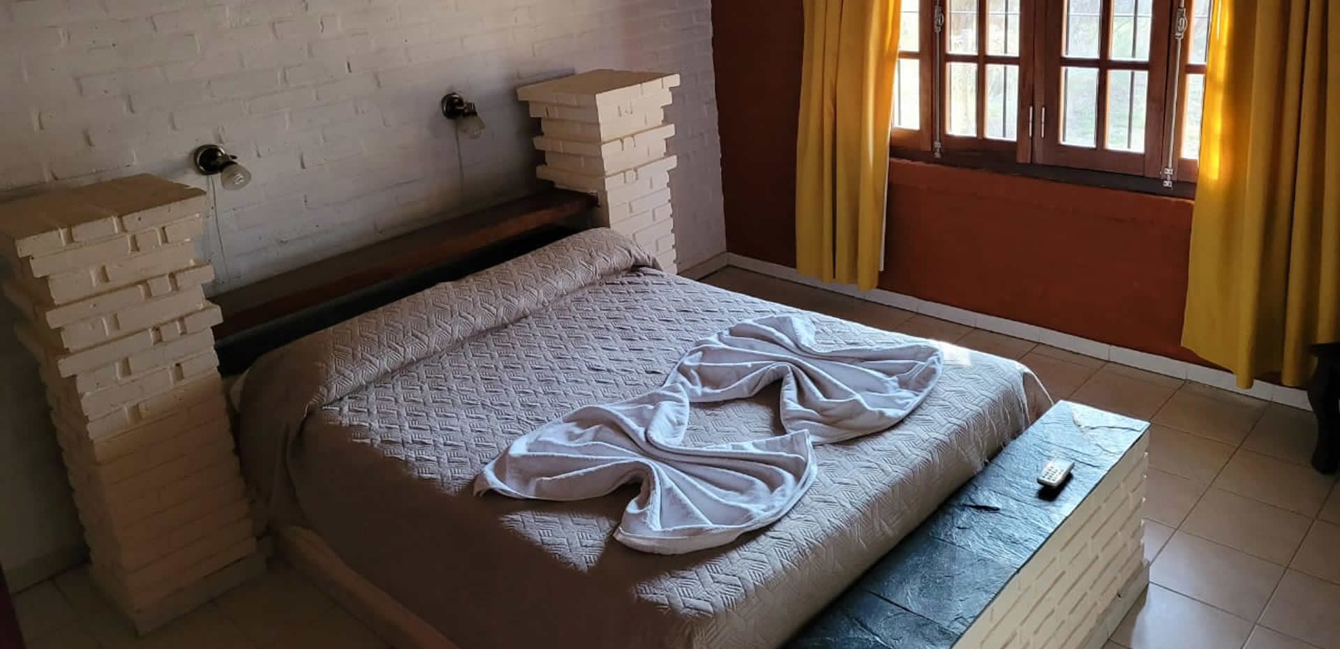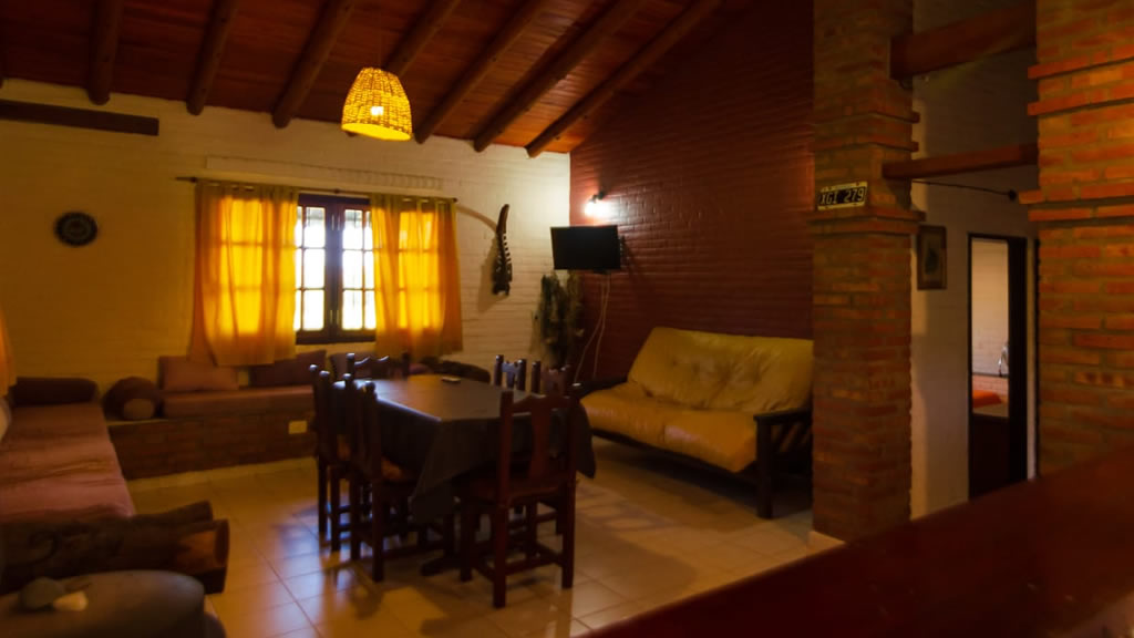 Las cabañas cuentan con dos habitaciones, un baño, cocina comedor, living, galería, cochera y asador individual.
